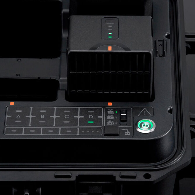 La Estación de Batería Inteligente BS65 es una solución integral para cargar, almacenar y transportar las baterías del Matrice 350 RTK. Diseñada para mejorar la eficiencia y prolongar la vida útil de las baterías, esta estación está equipada con características avanzadas.
