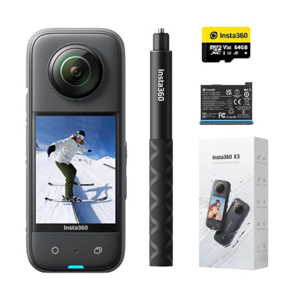 La Insta360 X3 Adventure Combo es el paquete perfecto para quienes desean grabar cada detalle de sus aventuras con libertad total. Esta cámara de acción graba en 5.7K 360° y viene equipada con accesorios esenciales para que empieces a crear desde el primer día. Captura todo lo que te rodea con calidad profesional, efectos inmersivos y un diseño a prueba de condiciones extremas.
