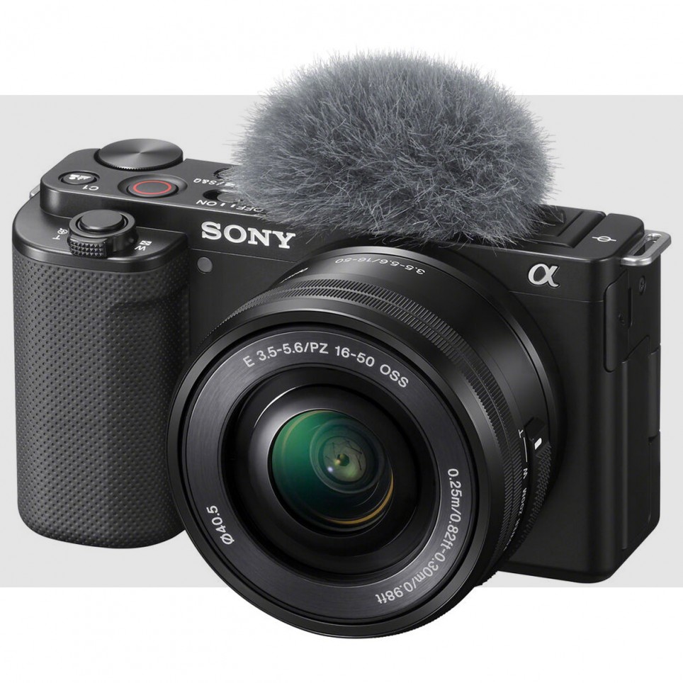 Cámara sin espejo Sony ZV-E10, Lente Sony E PZ 16-50 mm f / 3.5-5.6 OSS, Batería recargable Sony NP-FW50 (1020 mAh), Adaptador de CA de Sony, Cable micro-USB, Pantalla de viento